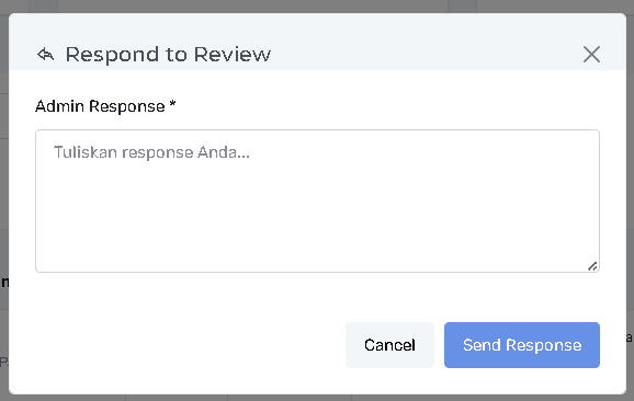 Action (Response): Klik ikon Respons (berbentuk kotak teks 💬) untuk membuka Modal Respond to Review (lihat poin 4).