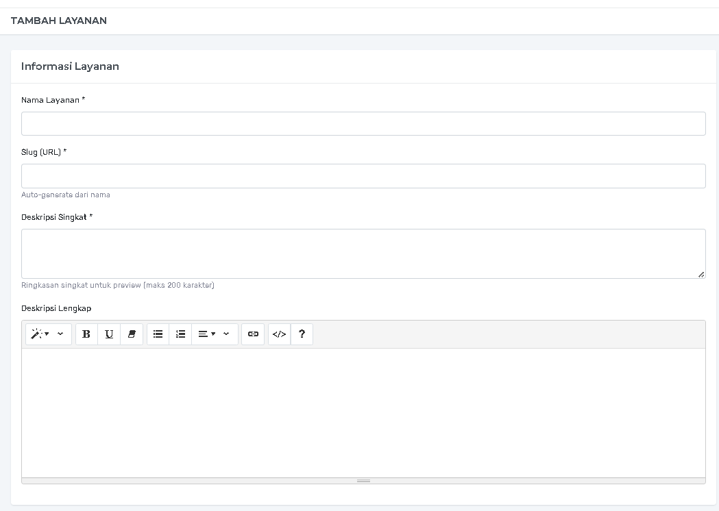 Featured: Menandai apakah layanan ini merupakan layanan unggulan (ditampilkan lebih menonjol di website).