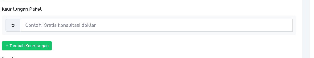 Klik + Tambah Keuntungan untuk menambahkan setiap keuntungan (contoh: Gratis konsultasi dokter).
