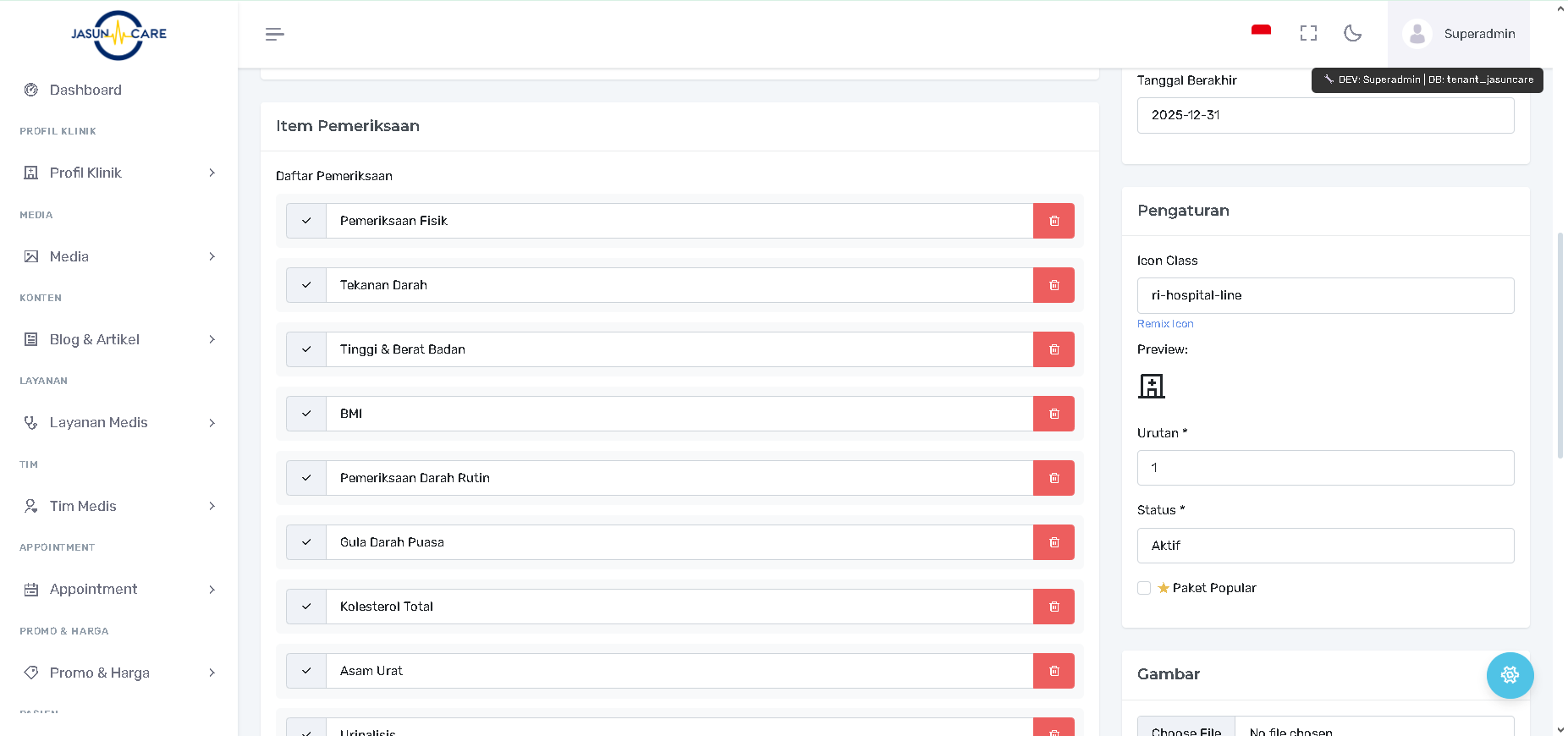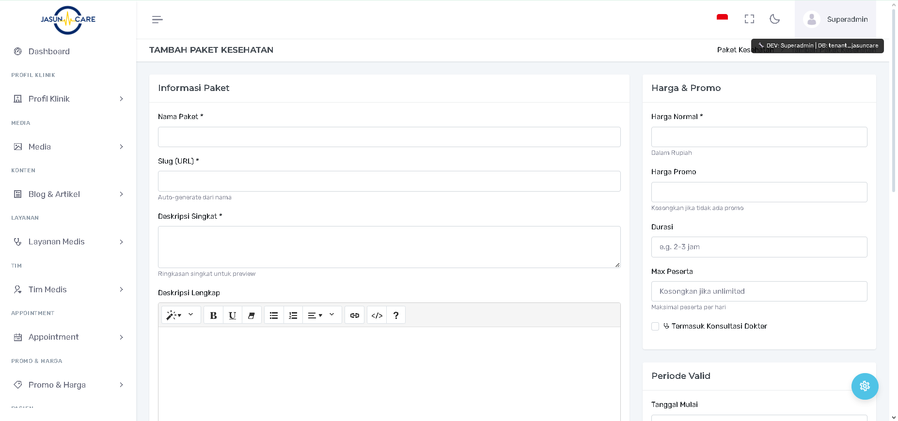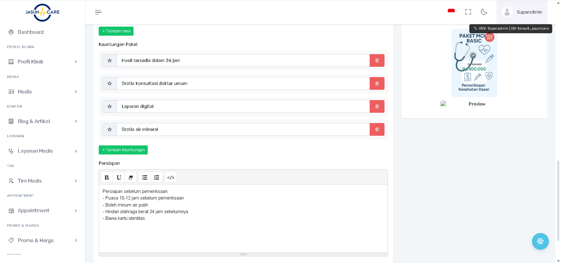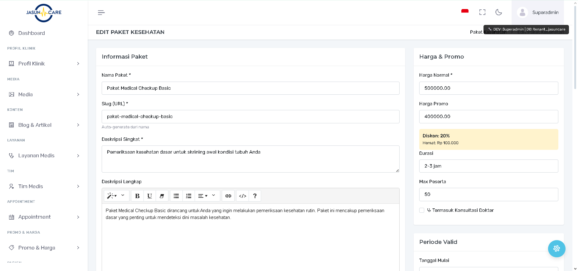 Nama Paket (Wajib): Masukkan nama paket (contoh: Paket Medical Checkup Jantung).
