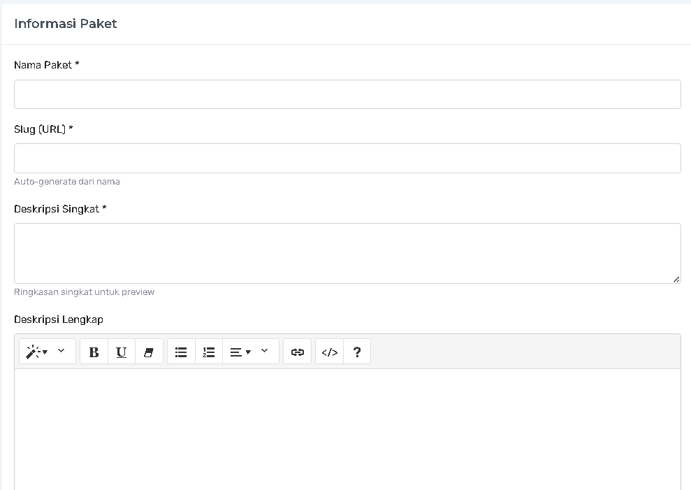 Deskripsi Singkat (Wajib): Ringkasan singkat paket untuk preview.